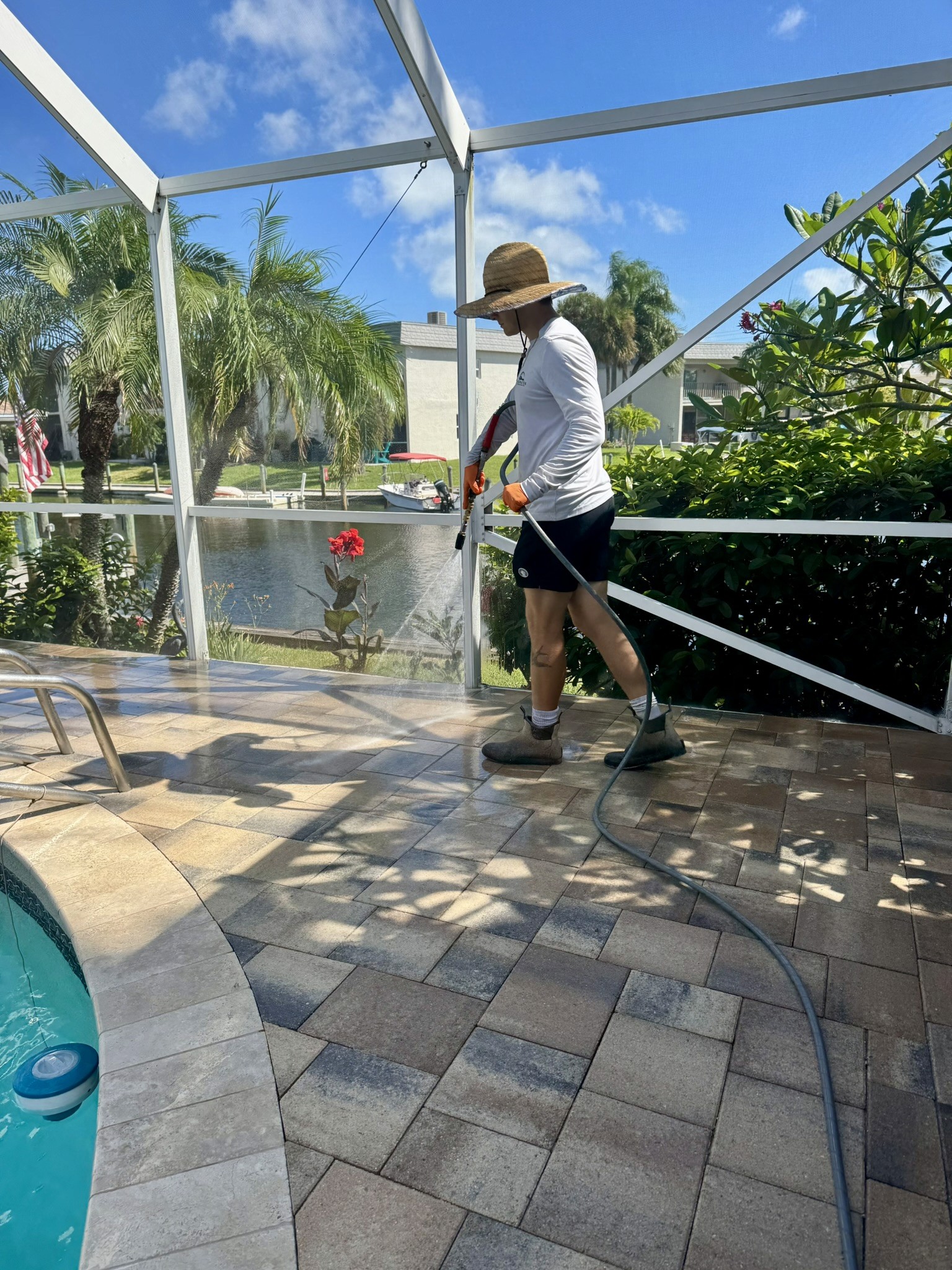 Safe soft washing for coastal homes, roofs, pavers, and pool areas.